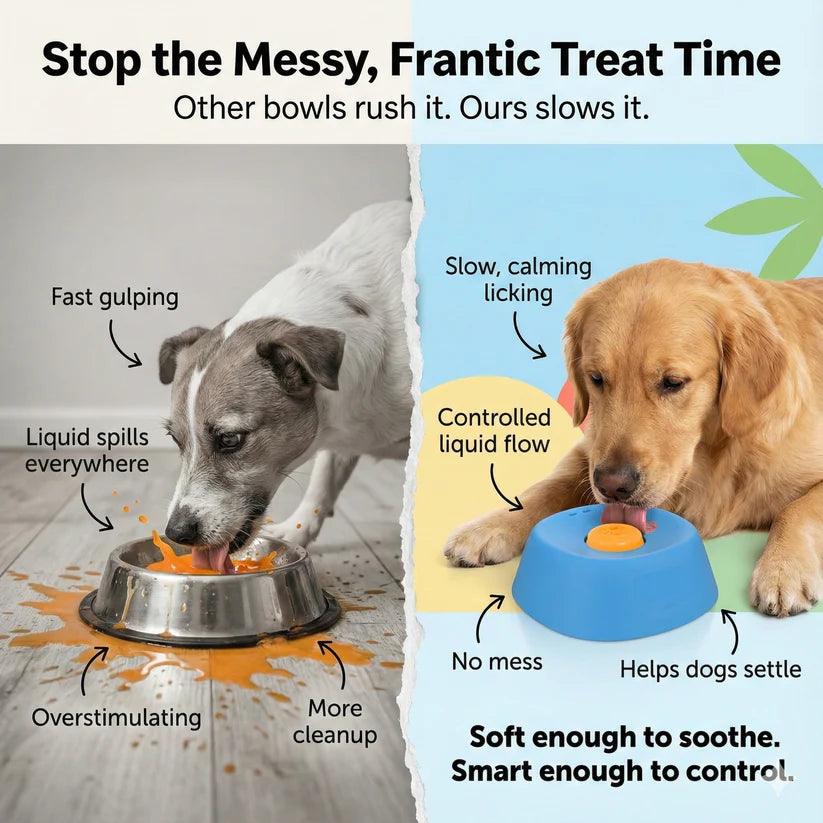 The anti-slip silicone base prevents flipping and sliding, even with aggressive lickers. The bowl is made from durable, food-grade materials designed to withstand daily use. Unlike soft silicone mats, this bowl maintains its structure and can't be chewed or torn.